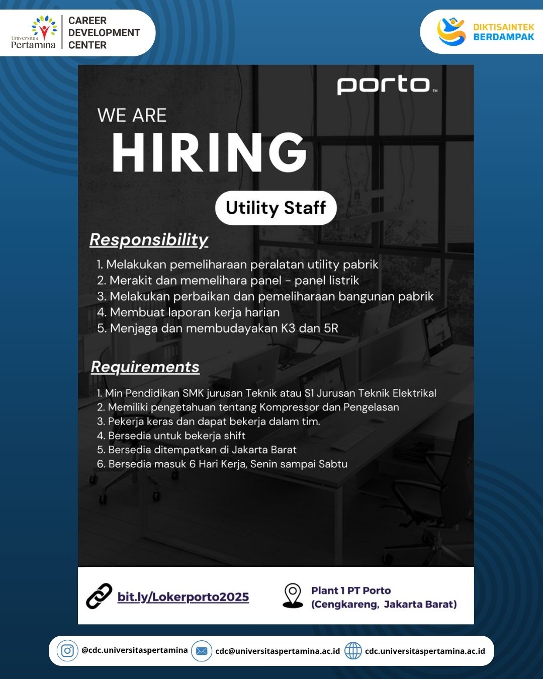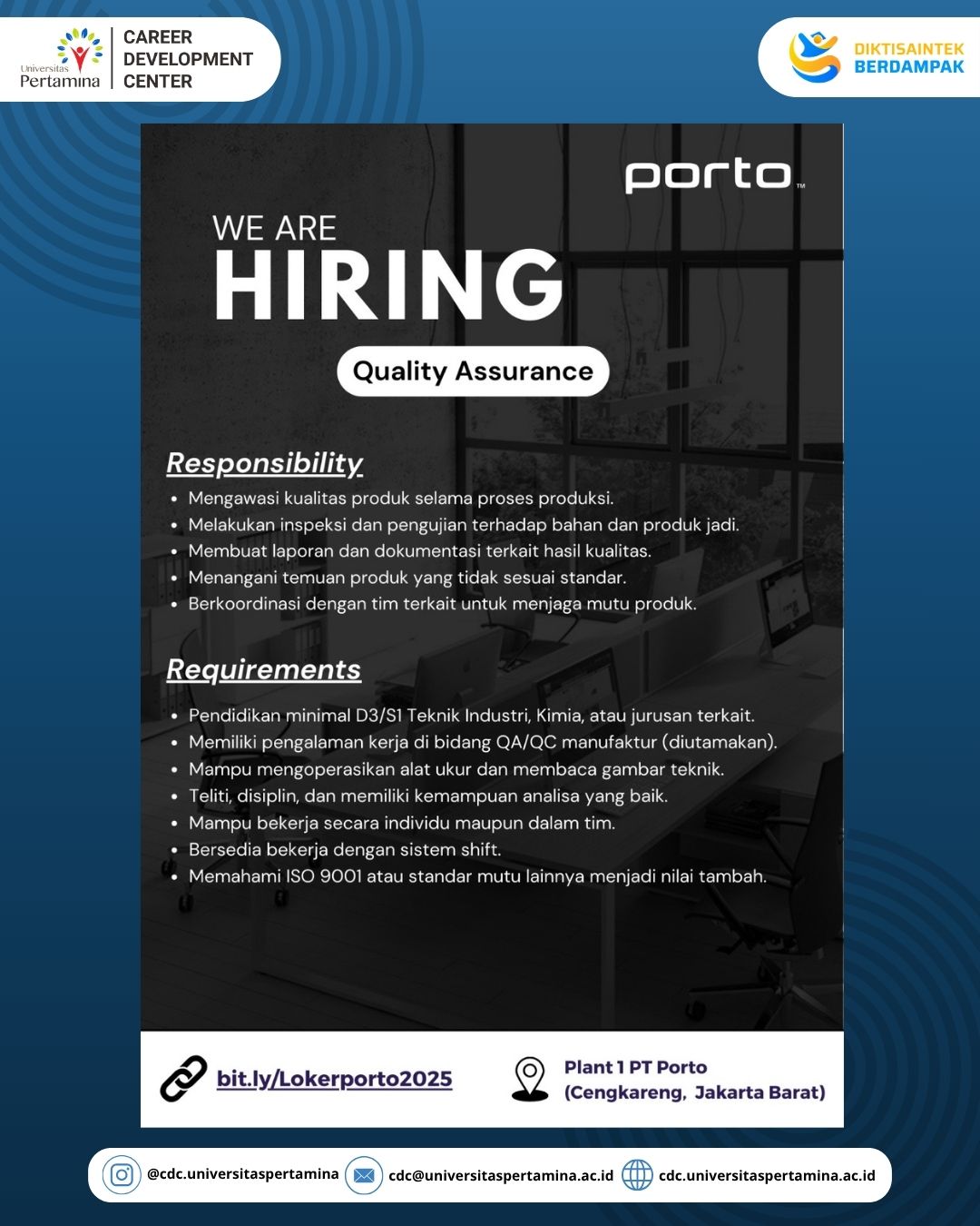 Kualifikasi lengkap posisi yang dilamar dapat dilihat di : recruitment.porto.co.id