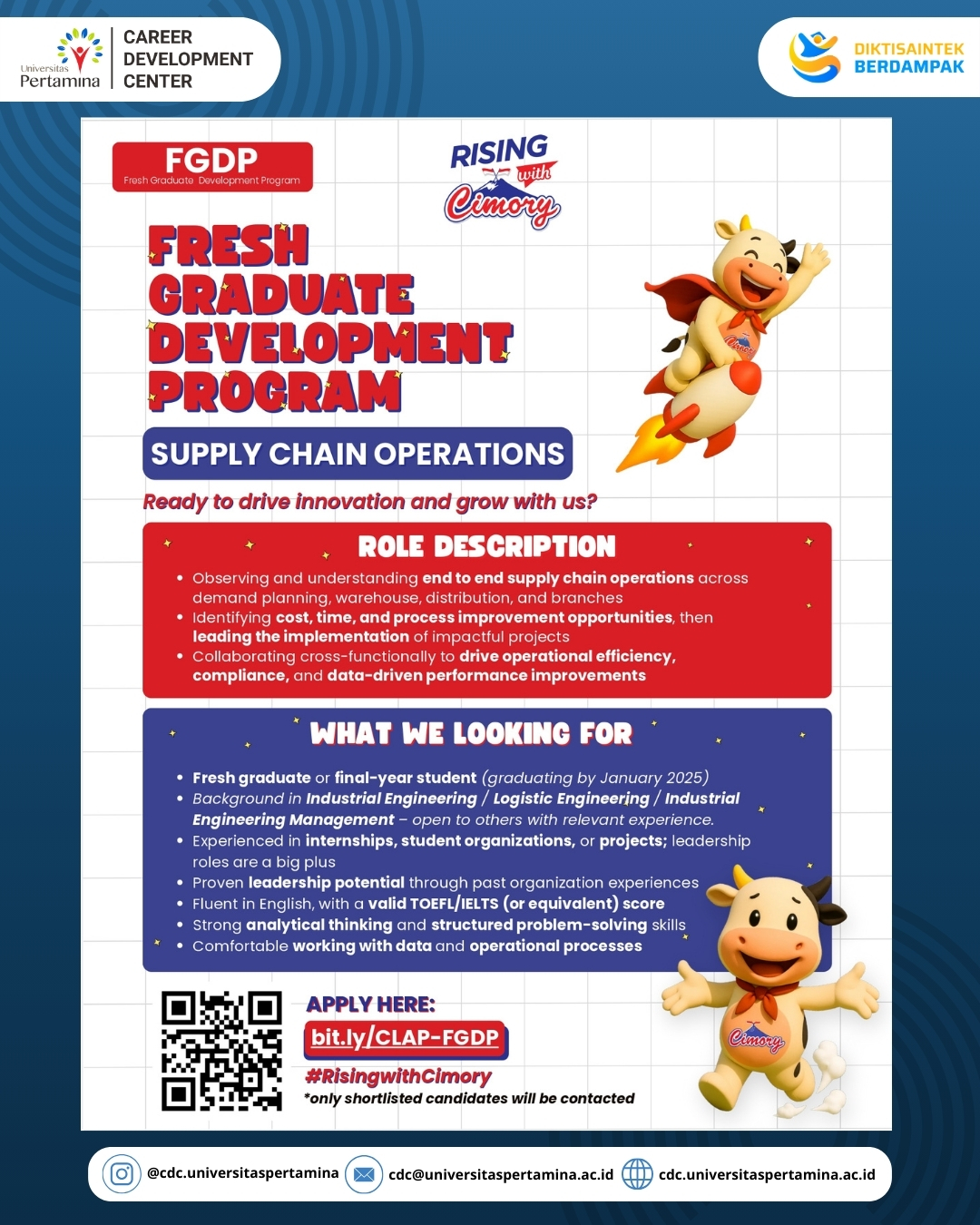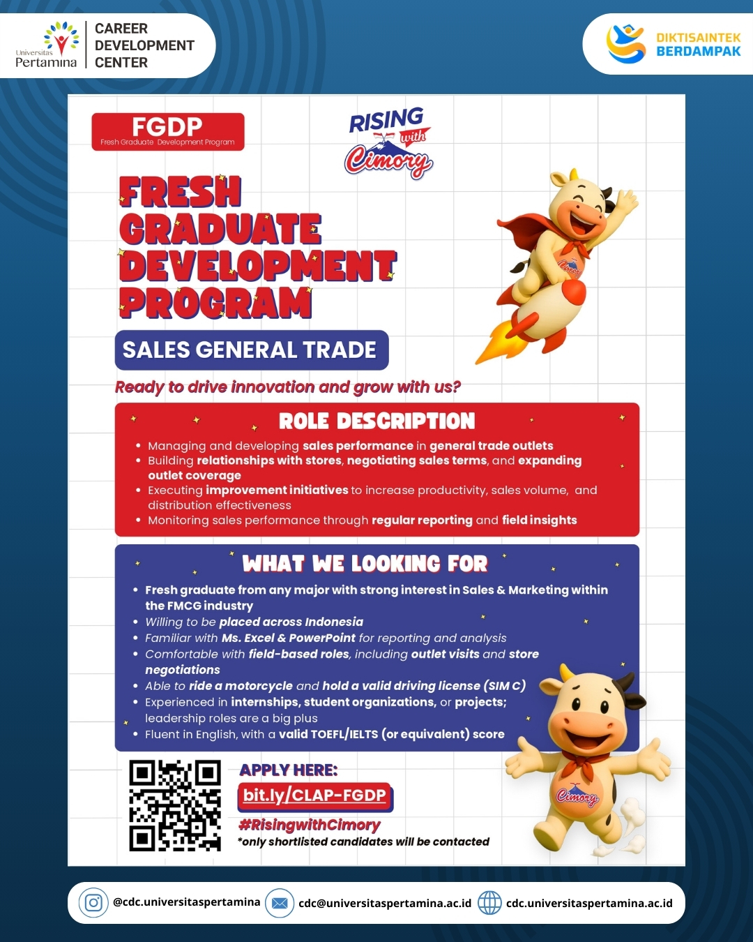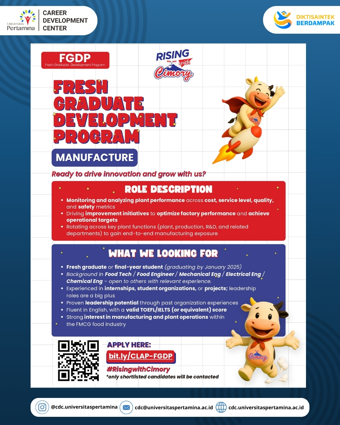 Cimory Group Fresh Graduate Development Program (FGDP)FGDP is designed for fresh graduates who are eager to learn fast, work hands-on, and create real impact in a dynamic FMCG environment.