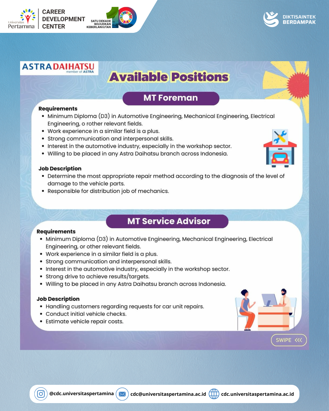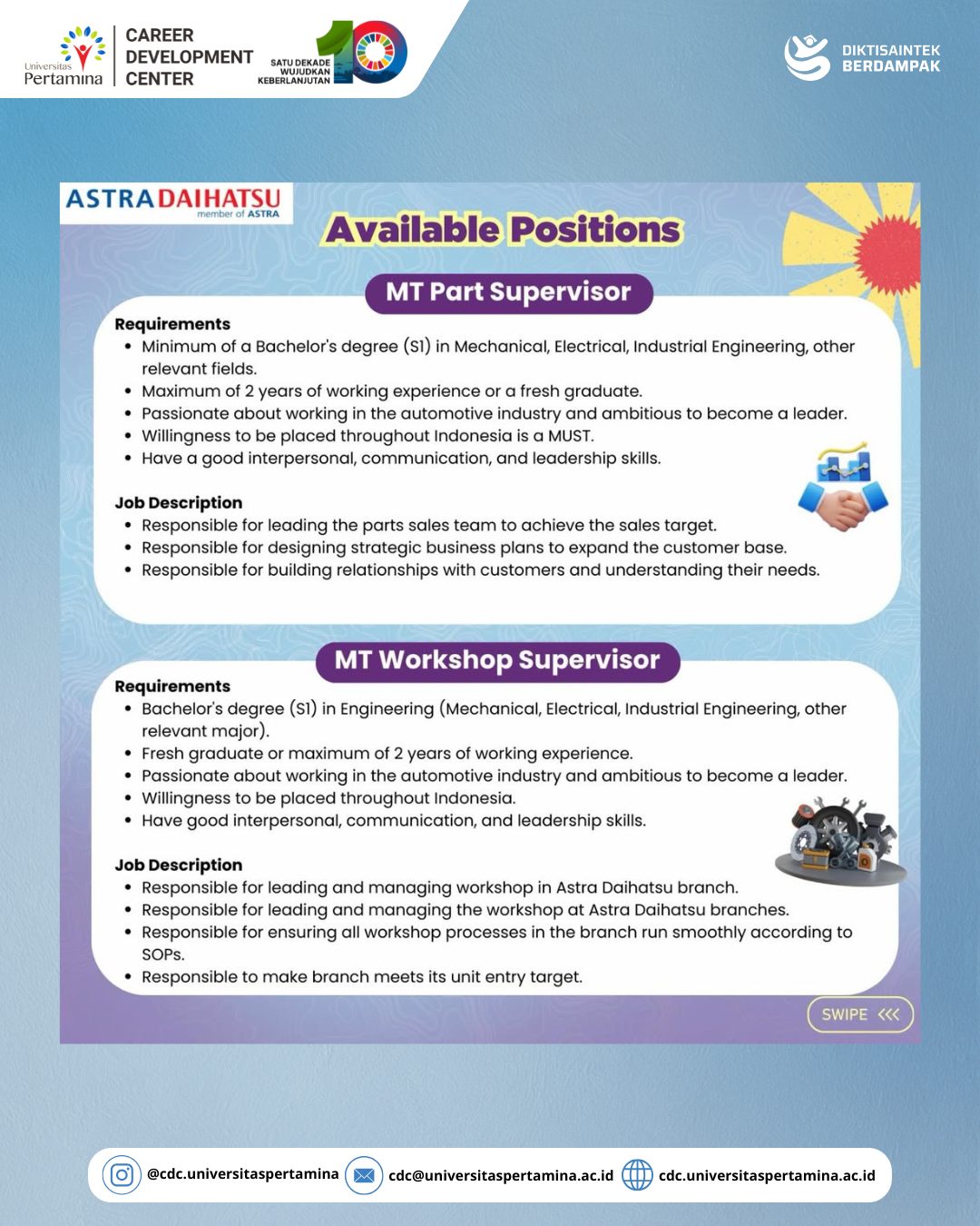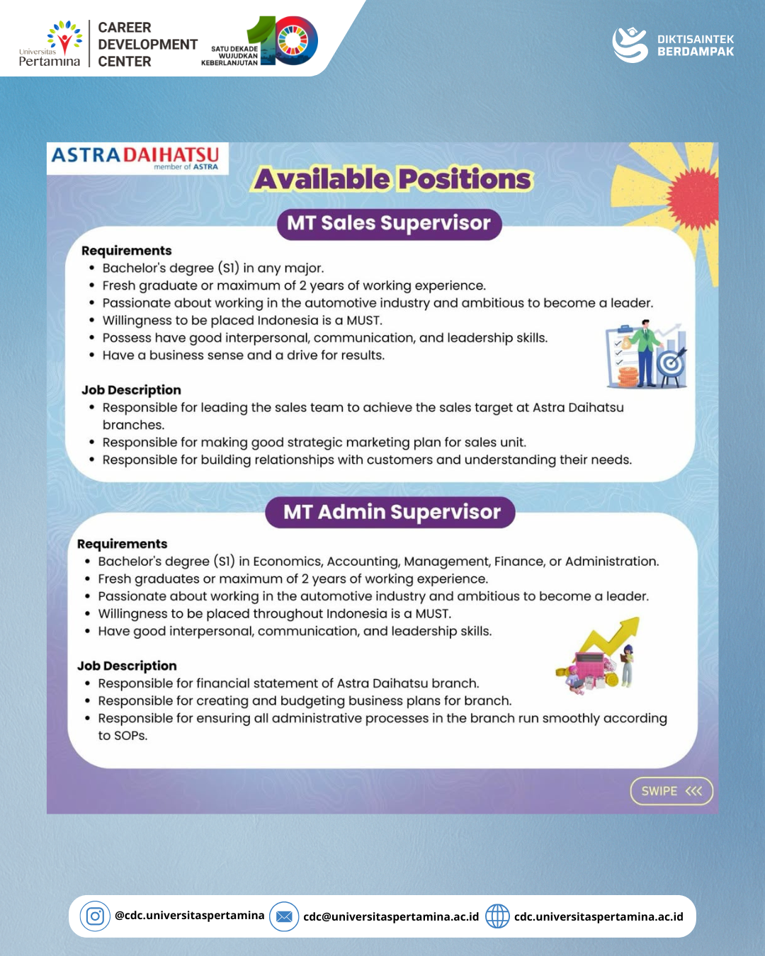 Ready to accelerate your career in the automotive industry!?Astra Daihatsu is opening recruitment for Management Trainee Batch 1 — a fast-track development program designed to shape future leaders with strong business sense, leadership, and passion for growth