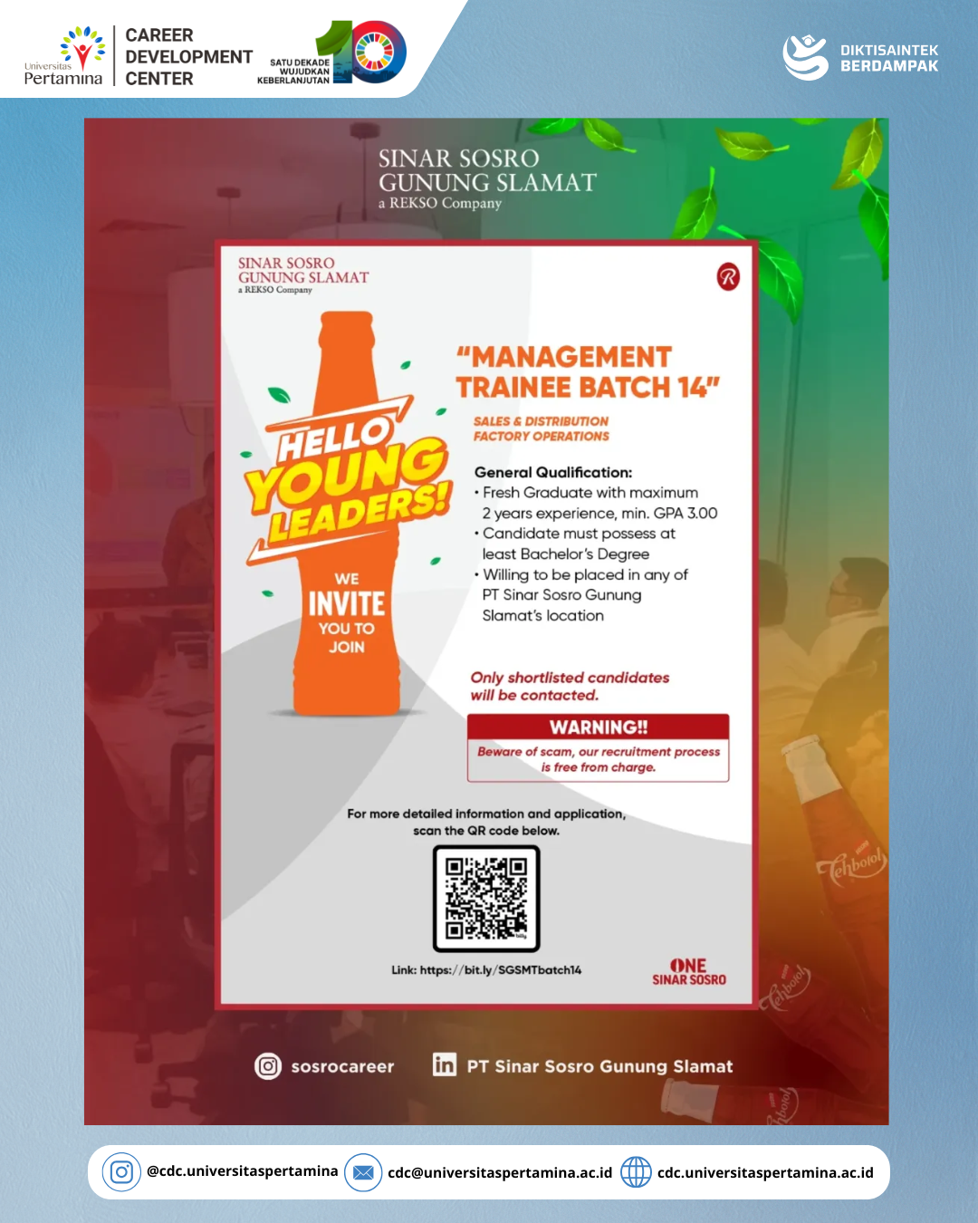 PT SINAR SOSRO GUNUNG SLAMAT MANAGEMENT TRAINEE BATCH 14