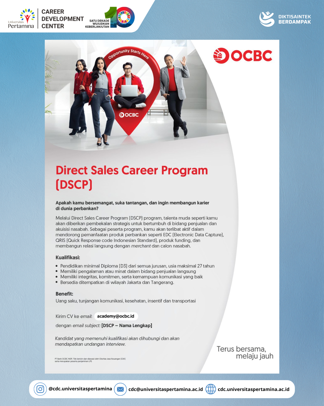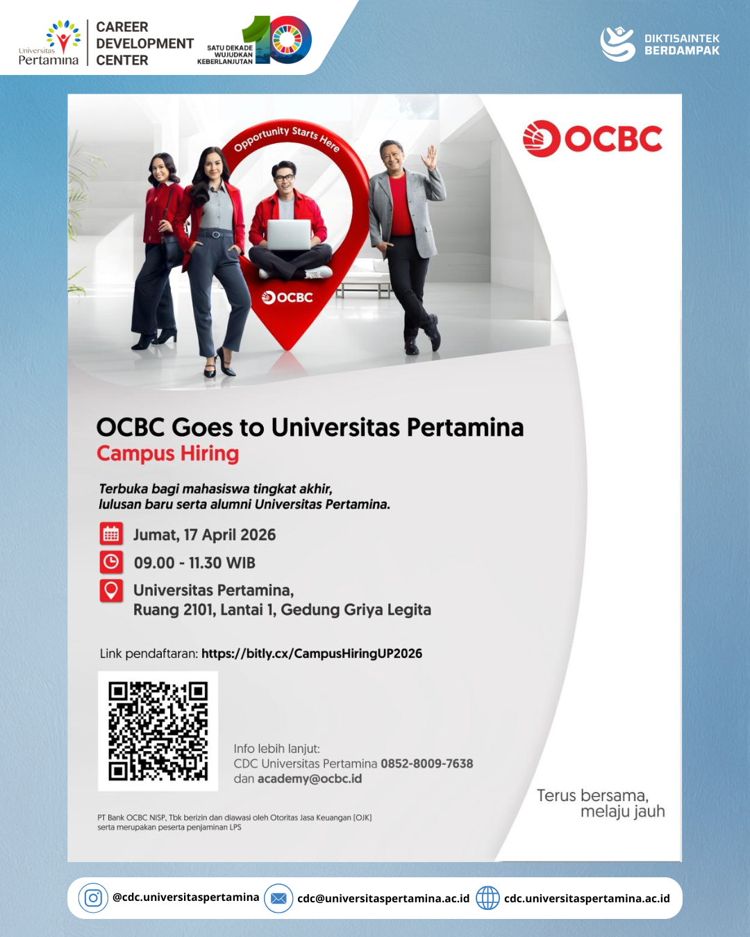 Campus HiringOCBC hadir di Universitas Pertamina untuk membuka peluang karier bagi mahasiswa tingkat akhir, fresh graduate, dan alumni!